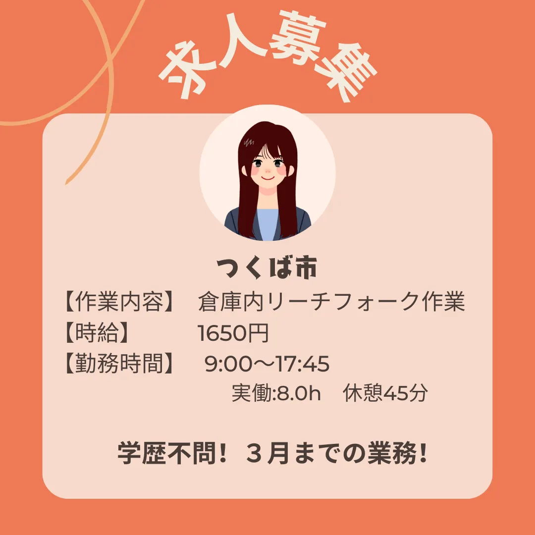 3月末までの短期ですが、高時給でしっかり稼げます♪