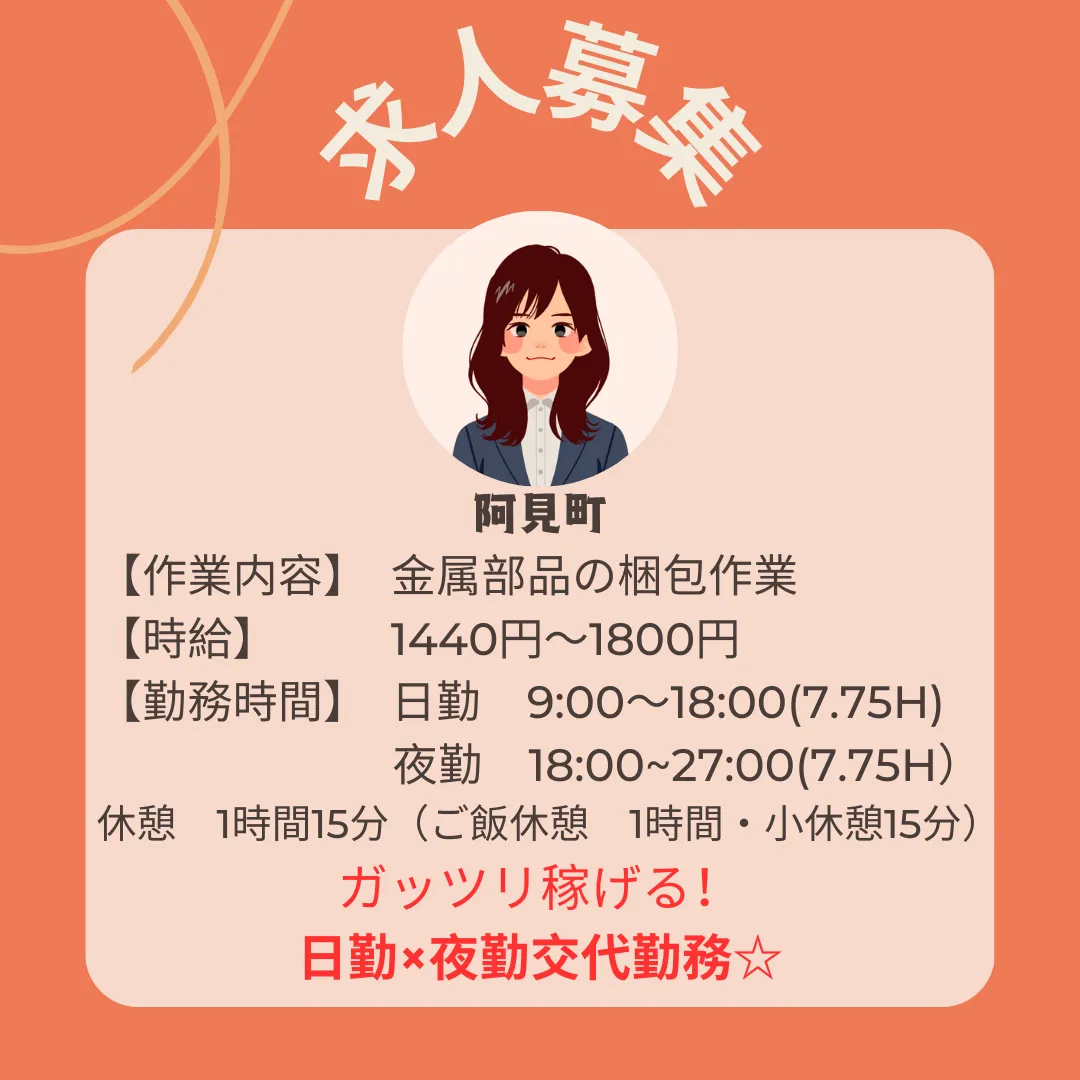 日勤のみの高時給でしっかり稼げる♪