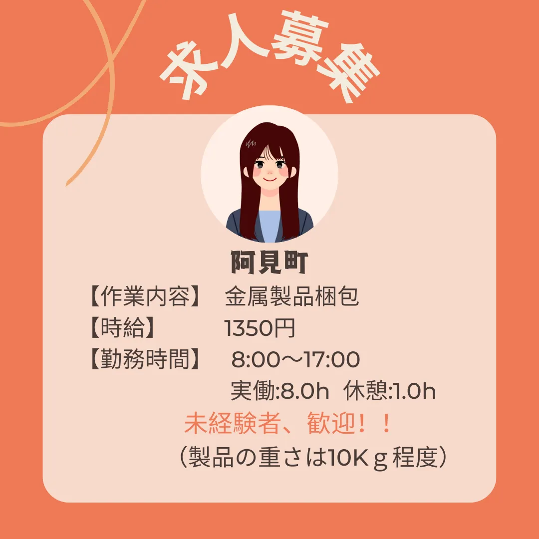 【主なお仕事内容】 金属製品の梱包作業をお願いします! ・箱や緩衝材を使って梱包 ・結束バンドを止める ・伝票を貼る などの出荷前の梱包業務です♪ 一人でお任せするのは10キロ程度で それ以上は、他の方と一緒に行うので 体に無理なく働けます! 職場は定着率が高く安定した環境です。 【高時給】 時給1,350円~1,687円 パート・アルバイトより高時給で働けるのが 派遣の魅力です。 【土日祝休み】 土日祝休みで心も体もリフレッシュできます! 他、GW、夏季・冬季休暇などの長期休暇もあり!