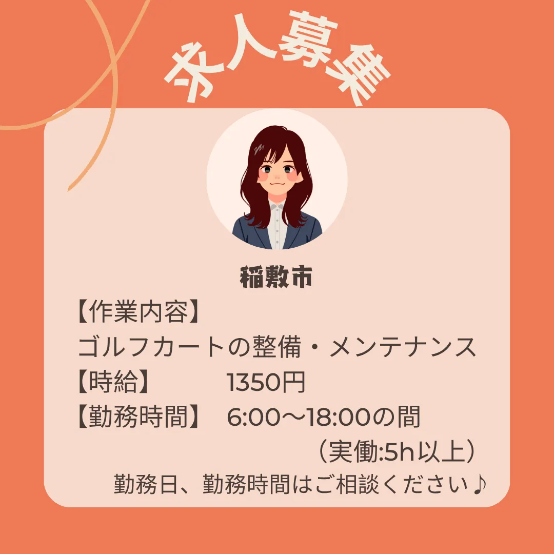 【稲敷市】ゴルフカートの整備スタッフ募集!!時給1350円